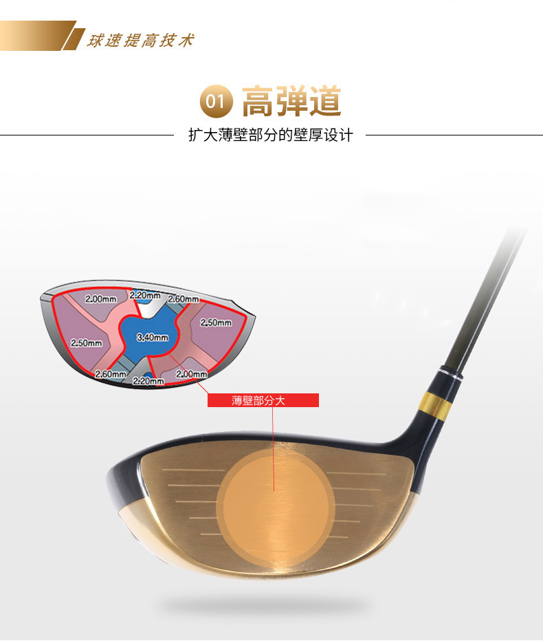 Gậy Wood: Mặt gậy được làm bằng Hợp Kim Titan cao cấp và được phủ lớp sơn tĩnh điện công nghệ cao, Cán gậy được làm bằng Graphite (Carbon), Tay cầm được làm bằng Cao Su. Ngoài ra toàn bộ gậy Wood đều được thiết kế hốc hút gió làm giảm sức cản của không khí lên mặt gậy.