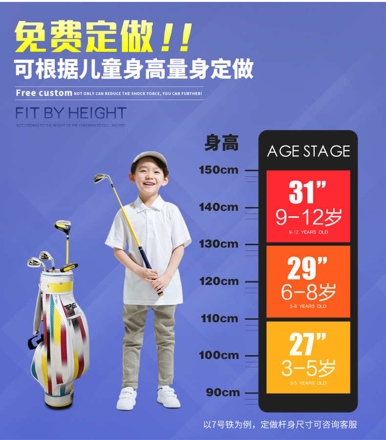 Bộ gậy được thiết kế với chiều dài và các thông số dành riêng cho các bé mới tập chơi Golf, với trọng lượng nhẹ nhờ đó bé có thể vung gậy dễ dàng và thoải mái mà không hề tốn quá nhiều công sức.