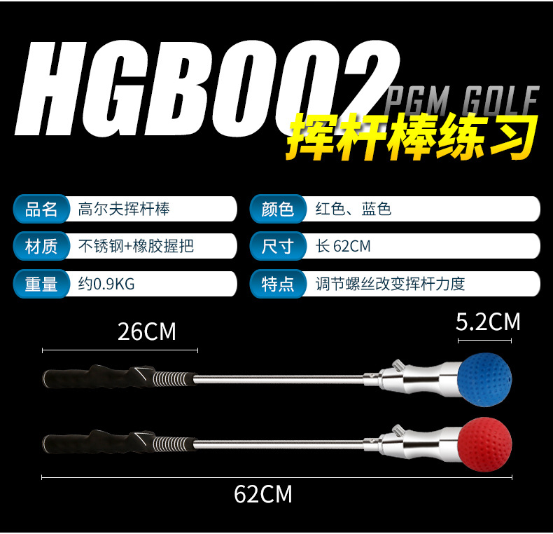 - Gậy tập HGB002 là phiên bản nâng cấp của gậy tập Swing HGB001, nó sở hữu những ưu điểm vượt trội: nhanh chóng điều chỉnh tư thế cầm nắm gậy, kiểm tra tốc độ và sức mạnh của cú Swing, công cụ tập luyện gia tăng lực đánh của tay.