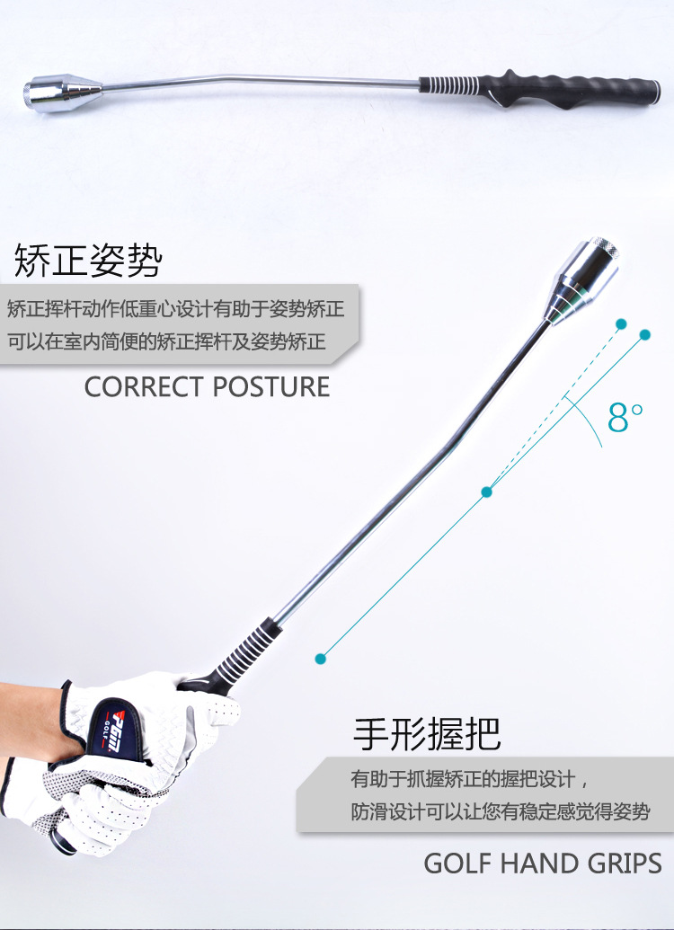 - Gậy tập HGB001 là dạng gậy tập phổ biến cho người mới chơi Golf, nó sở hữu những ưu điểm vượt trội: nhanh chóng điều chỉnh tư thế cầm nắm gậy, kiểm tra tốc độ và sức mạnh của cú Swing, công cụ tập luyện gia tăng lực đánh của tay.