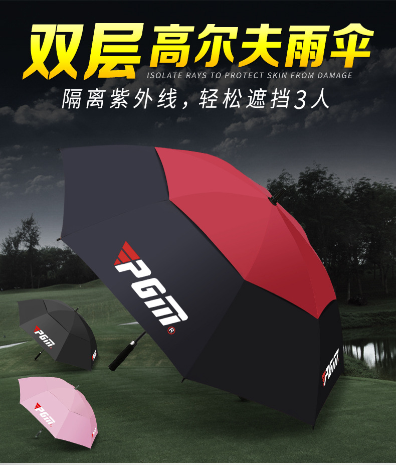 - Ô dù golf hai lớp dày dặn, đường kính ô lớn 133cm dễ dàng che chắn cho 3 người.