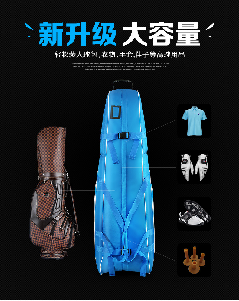 - Túi hàng không HKB008 là túi bọc ngoài bảo vệ bộ gậy khi bạn phải di chuyển bằng máy bay, dễ dàng chứa được cả bộ gậy fullset đi kèm túi gậy, giày, quần áo và nhiều phụ kiện Golf khác.
