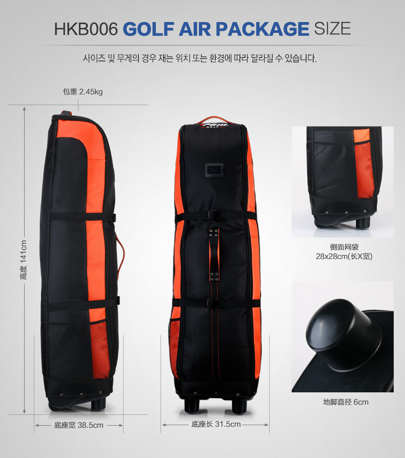 - Túi hàng không HKB006 là túi bọc ngoài bảo vệ bộ gậy khi bạn phải di chuyển bằng máy bay, dễ dàng chứa được cả bộ gậy fullset đi kèm túi gậy, giày, quần áo và nhiều phụ kiện Golf khác.